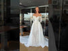 Make your dream wedding a reality with this stunning ballroom silhouette wedding dress. Featuring hand-embroidered beads, a removable skirt, and luxurious lace material, this dress will make you feel like a princess on your special day.