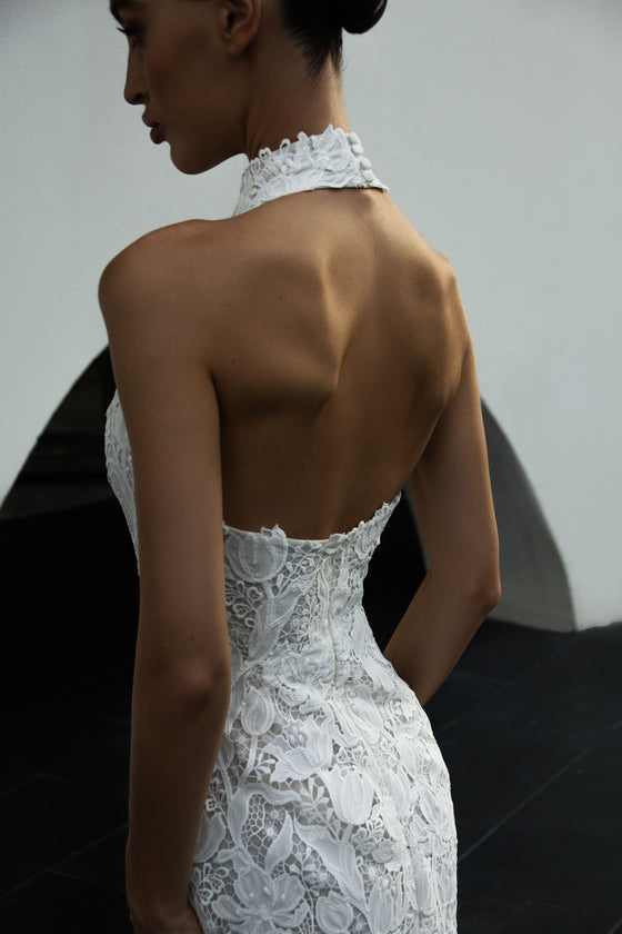 - The open back of this dress adds a hint of sensuality, while still maintaining a modest and tasteful look.